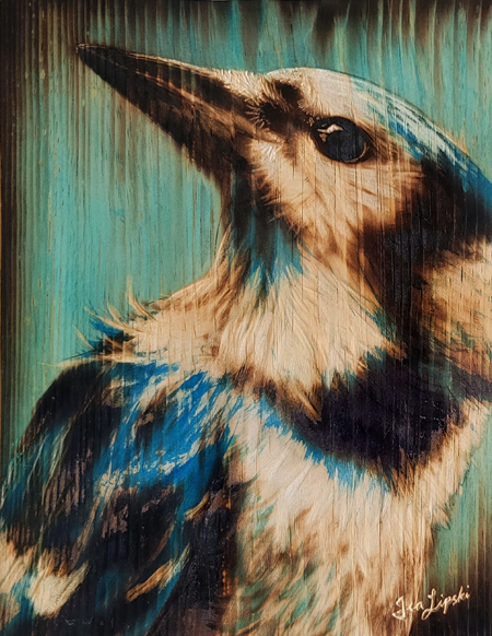 "BlueJay Study" - 9 x 12" ~ Burned and Carved Wood - 2025